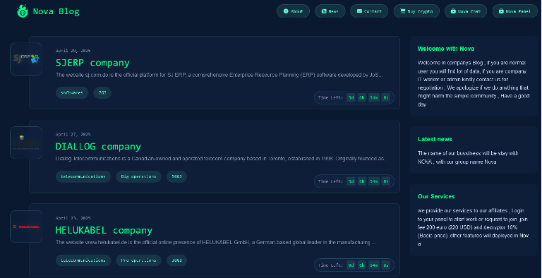 The newest victim on the Nova DLS is SJ ERP, an enterprise resource management system software provider based in the Dominican Republic. A small sample of data has been released to show proof of the attack. The group claims that the stolen data contains customer information, sales details, software secrets such as source code, and more.