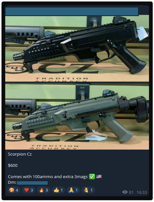 The CYJAX Open-Source Intelligence (OSINT) team recently conducted research into the sales and advertisement of firearms on the instant messaging platform Telegram. We explored the current customer base of vendors, current demand, and an increase in vendors seeking to courts UK-based audiences.