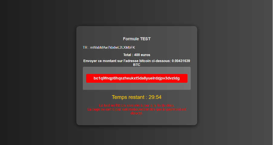 Figure 5 – Payment page for the “TEST” order.