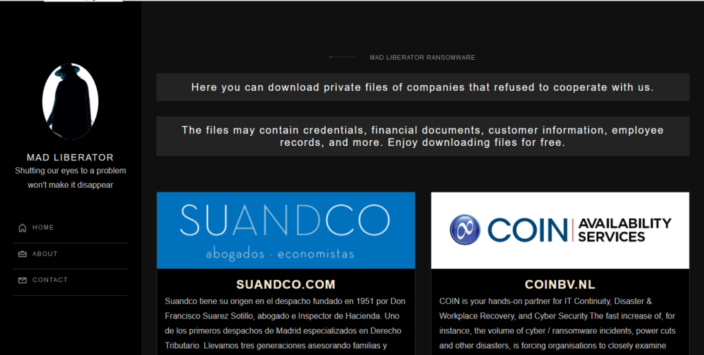 Mad Liberator, which is allegedly “made up of hackers from around the world”, published its DLS in July 2024. It has listed nine victims as of August 2024. No details are available regarding the type of ransomware used in attacks, other than that files are reportedly encrypted with AES-RSA; however, it is clear the group likely uses the double extortion method. Mad Liberator allegedly gives victims one day to pay the ransom before listing their name on its DLS, then allegedly provides a five-day notice before publishing any data.