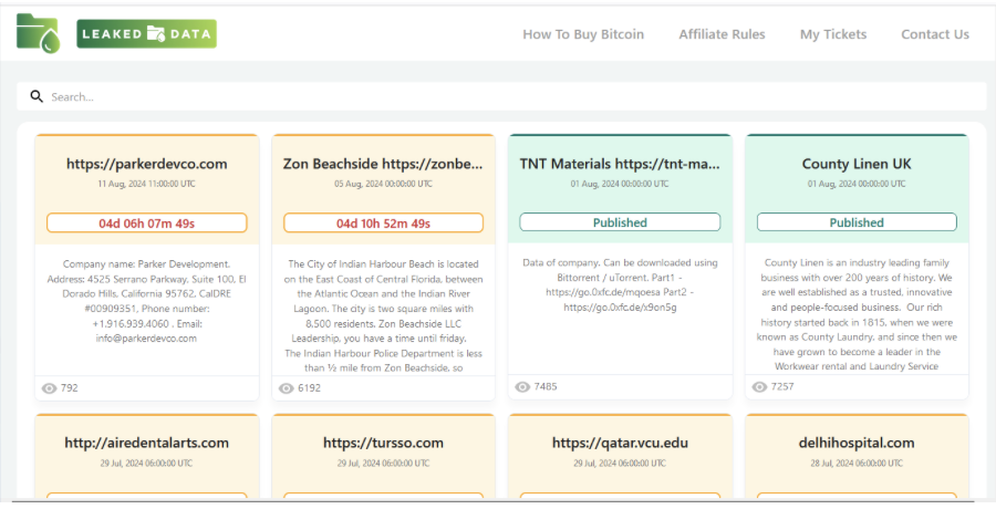 It is important to note that not all the below sites belong to ransomware groups. In particular, Pryx is believed to be a data brokerage group which uses malware to infect organisations and steal data, which is then sold on its DLS. Similarly, Dispossessor’s DLS largely consists of reposts of other ransomware groups’ victims.