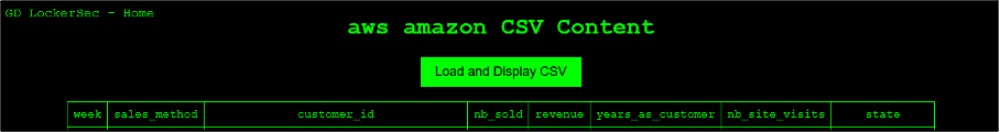 - Amazon Web Services (aws.amazon.com) (AWS), which was named on 22 January 2025. GD LockerSec has not released a download link for the 9GB of data it claims to have stolen from the organisation. However, visitors can load and display a CSV of the data that contains the following column headings: “week, sales_method, customer_id, nb_sold, revenue, years_as_customer, nb_site_visits, state”.
