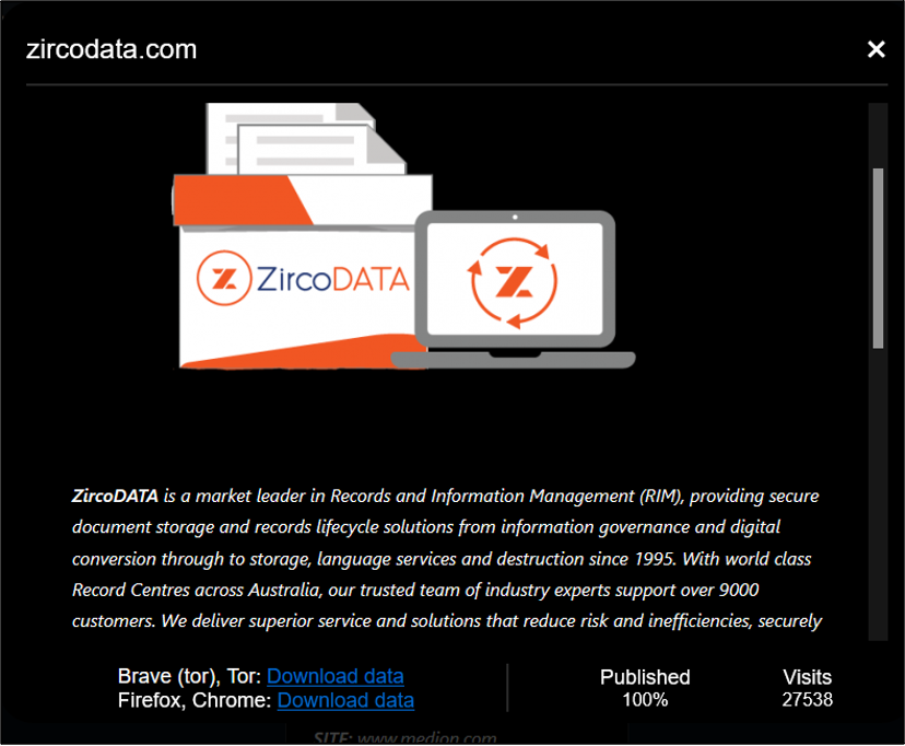 Figure 16 – ZircoDATA listing on BlackBasta’s DLS.