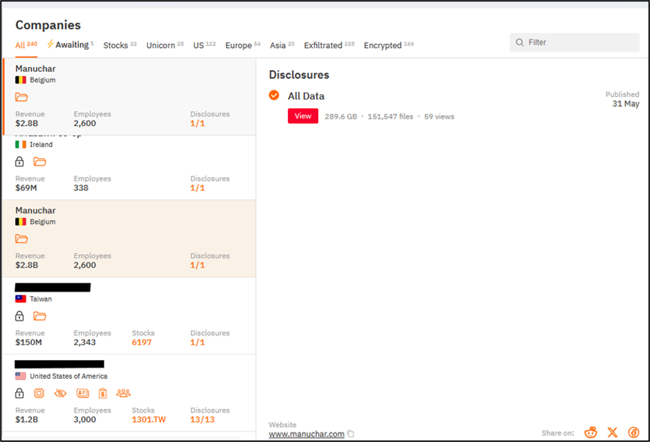 Figure 14 – Manuchar listing on HuntersInternational DLS.
