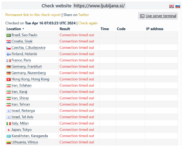 Hacktivist groups using Telegram frequently engage in distributed denial-of-service (DDoS) attacks against organisations within specific industry sectors and countries where they aim to effect change. DDoS attacks involve overwhelming a resource by flooding it with a large volume of data packets, often through legitimate requests, causing the resource to crash or become unresponsive. These groups often share links to Check-Host reports a platform that displays the downtime experienced by a given URL as “proof” of a successful DDoS attack against the targeted organisation’s website. While Check-Host reports alone do not definitively prove a DDoS attack, they serve as compelling circumstantial evidence supporting the claim.