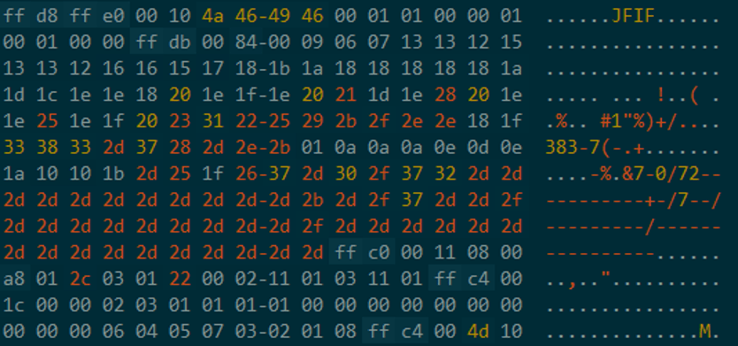 Opening the image in a hex editor we can confirm that this is a legitimate JPEG (JFIF) image.