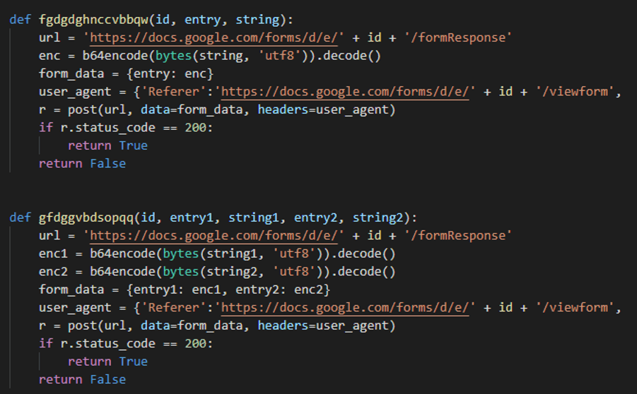 The threat actor has used a couple of techniques to attempt to thwart analysis, such as checking for physical disk serial numbers, and in order to hinder reversing the backdoor back to Python code the Python binary has been altered slightly, causing Uncompyle6 to throw an error. Eventually, after fixing the PYC header, we are able to reverse the backdoor to Python source. We can see the code has almost no obfuscation, simply using garbage variable and function names.The backdoor has a few functions: