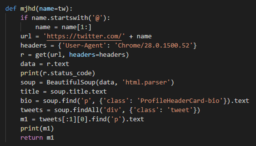 - Receives commands and config from a Twitter account, by polling Twitter and parsing the HTML