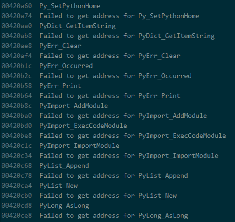 The payload extracted from the image is a Windows executable file. Checking for strings within the binary, we can see that this is a compiled Python executable.