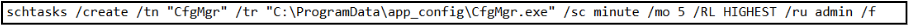 Before executing the final payload, a persistence mechanism for the third stage is established through a scheduled task using the command shown below.
