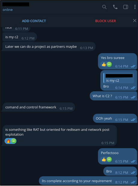 Figure 3 –Screenshot of Telegram conversation between a forum user and RedLotus.