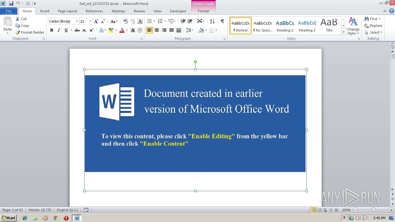 Next, we’re going to explore a recent Emotet delivery document that also used a macro to spawn PowerShell.