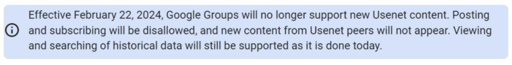 Fig 9 – Google Groups announcement regarding Usenet support.