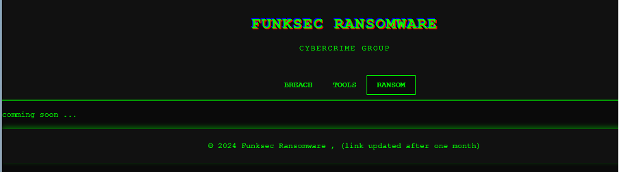 Currently, this page does not have any content, simply stating “comming [sic] soon …”. Due to the new appearance of Funksec in the threat landscape, it is highly likely that this page will be populated as the group continues to conduct ransomware attacks.