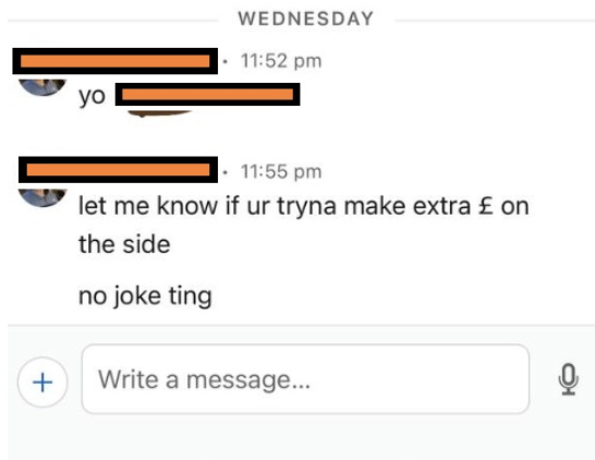 LinkedIn has recently become a hotbed for threat actors to identify, contact, and convert staff into insiders, both willingly and unwillingly. LinkedIn is noted as a useful tool for threat actors seeking to remotely recruit insiders, as a targeted employee’s location information, employer, job role, seniority and, most importantly, contact information are available for public viewing. CYJAX has found threat actors urging other to “DM for Innys” aggressively on LinkedIn within vetted channels of the UK fraud scene which we have unique access to. Fraud threat actors who operate on LinkedIn primarily target employees who have high access to customer data or can approve applications in the financial services, retail, telecommunication, and insurances sectors. Through CYJAX's research, we have found threat actors direct messaging employees on LinkedIn with the offer of extra money in return for information.